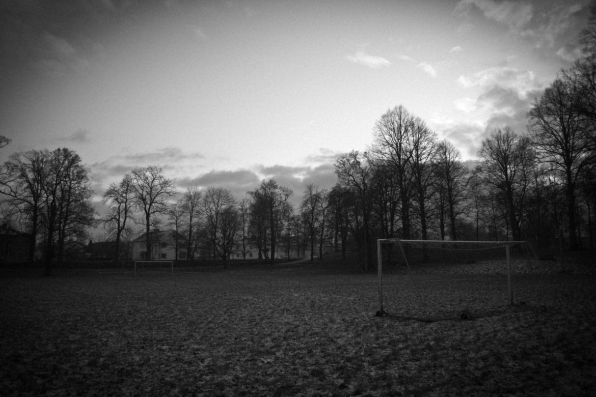 Está en la cancha jugando fútbol en una noche seca. Juega con sus vecinos, esta vez va ganando y eso es una novedad. Diego le pasa la pelota, él se concentra en el ángulo superior derecho y falla. La pelota rebota y se aleja hacia la esquina oscura donde se acumula el agua, él va por ella. Cuando la logra sacar del charco sin mojarse escucha un estallido. Luego otro y otro más. Mientras trata de entender qué pasa suena una alarma. La alarma. Se queda petrificado una vez comprende lo que ello significa. Mira hacia atrás y sus amigos han empezado a correr buscando refugio, en el fondo se desata un intercambio de fusilería pesada. Él siente que está en el fin del mundo y que no llegará a casa antes de que los chulos caigan en picada sobre él. Ve hombres armados corriendo por todas partes, son de los suyos, los buenos. Un soldado se enreda una canana sobre los hombros mientras le grita que se largue, que están en alerta 5. En seguida se escuchan las aspas de los helicopteros tomando velocidad y adentrandose en el cielo oscuro enmarañado. Un helicoptero fantasma lanza bengalas para iluminar toda la zona y deja ver que en el bosque detrás de la cancha de fútbol vienen centenas de hombres bigotudos corriendo. Tienen botas de caucho, como es de esperarse. Porque es la guerrilla la que se está tomando el batallón. Felipe corre y se da cuenta de que están en todas partes. No llegará a su casa que está a unas cuadras de distancia, así que se esconde detrás de un auto, sabe que él es un trofeo de guerra si es capturado, bastante le habían dejado saber que bajo ninguna circunstancia podía dejarse atrapar.