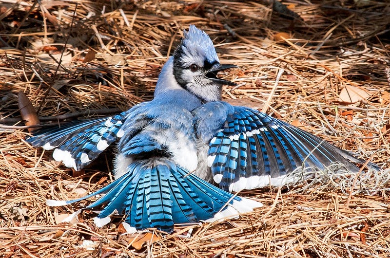 El azulejo se desplomó sobre el montículo de tierra fresca. Abrió las alas de par en par y abrigó con sus carnes un hormiguero furioso. La hormigas, notificadas de la invasión de su espacio vital salieron a la carga y se encontraron con las plumas azulinas del ave confederada. Fieles a su protocolo defensivo avanzaron, mordieron y avanzaron. El tumulto aplastado de granos arcillosos se envolvió en una bruma de hormigas que avanzaba sobre la superficie del azulejo. El azul de las plumas se ennegreció al cubrirse de pequeñas manchas que se movían de un extremo a otro entre sus alas y patas. Las hormigas mordían sus plumas y con frecuencia se encontraban con tumultosidades jugosas que se reventaban al contacto con el ácido fórmico de su saliva, los piojos y garrapatas que acosaban al azulejo eran devorados con vengativa sedicia. Se apropiaban de cada cavidad y vericueto del relieve plumífero. La intimidad del cuerpo del azulejo quedaba revelada al tacto de las hormigas bajo sus plumas. Las hormigas lo invadían todo y de todo se adueñaban. Así en medio de este feroz ataque encontró acomodo el azulejo y concentrado en su respiración, se quedó dormido.